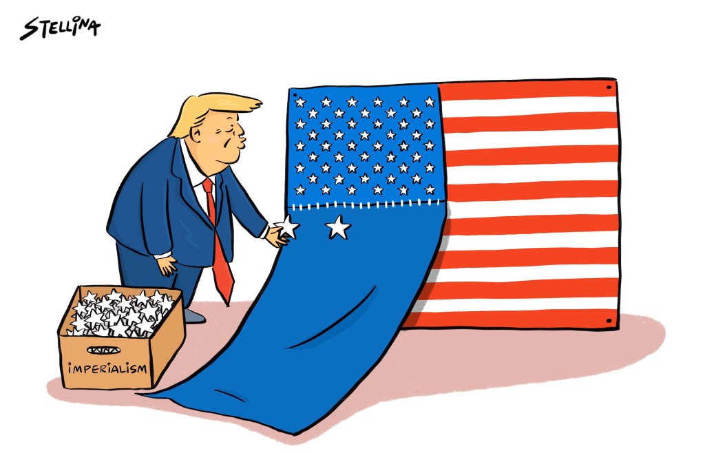 American imperialism, no one is safe 分享此文: Share on Facebook (Opens in new window) Facebook Share on X (Opens in new window) X Email a link to a friend (Opens in new window) Email Share on LinkedIn (Opens in new window) LinkedIn Share on Tumblr (Opens in new window) Tumblr Print (Opens in new window) Print Like Loading... Related